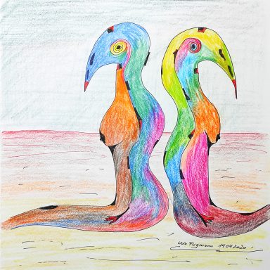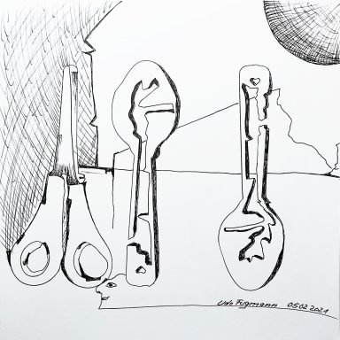 Der Betrachter wird eingeladen, genau hinzusehen; das alltägliche Suchen und Finden von Elementen wird zu einer Reise des Entdeckens. Ob es das Erkennen einer bestimmten Form ist, eine Anspielung oder ein Körperteil – jede Interpretation öffnet eine Tür zur Landschaft eines bizarren Himmels.